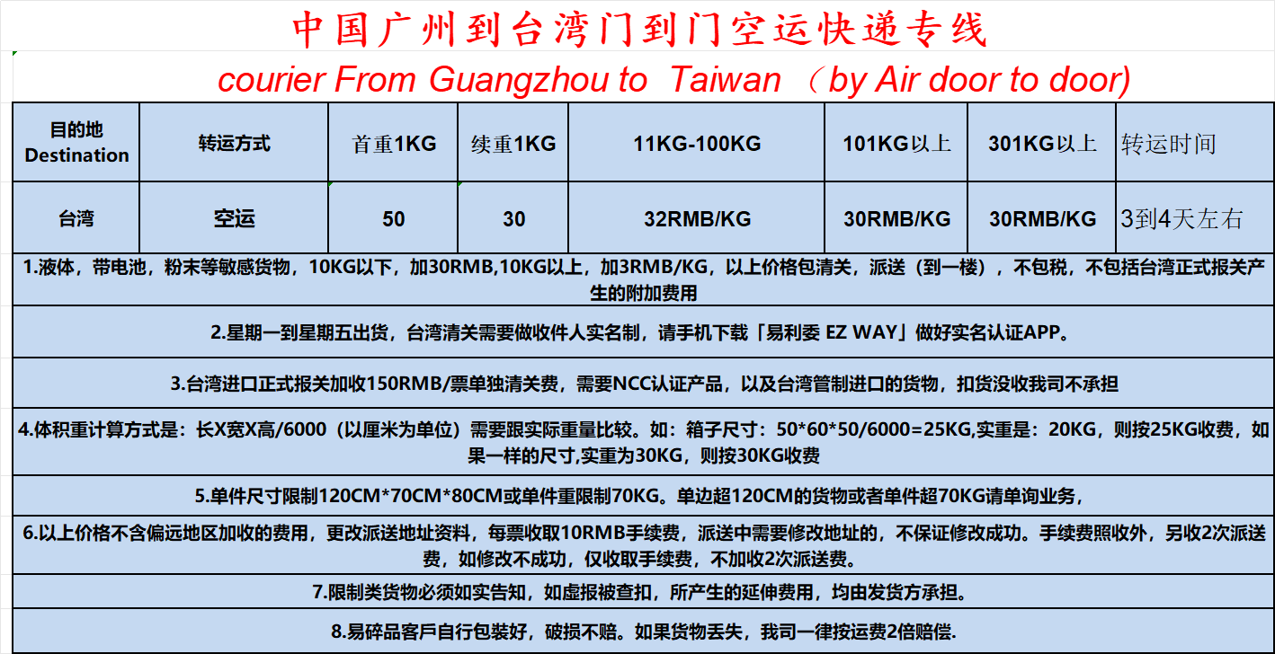 2.台湾空运快递门到门运输, 3到4天左右到